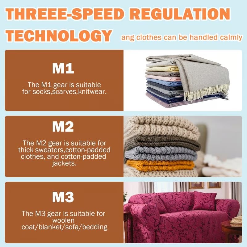 Fabric shaver up to 7000-8000 RPM Rotation. 6 stainless steel blades, 2x lint removal efficiency, which can remove clothing fuzz faster and more thoroughly.